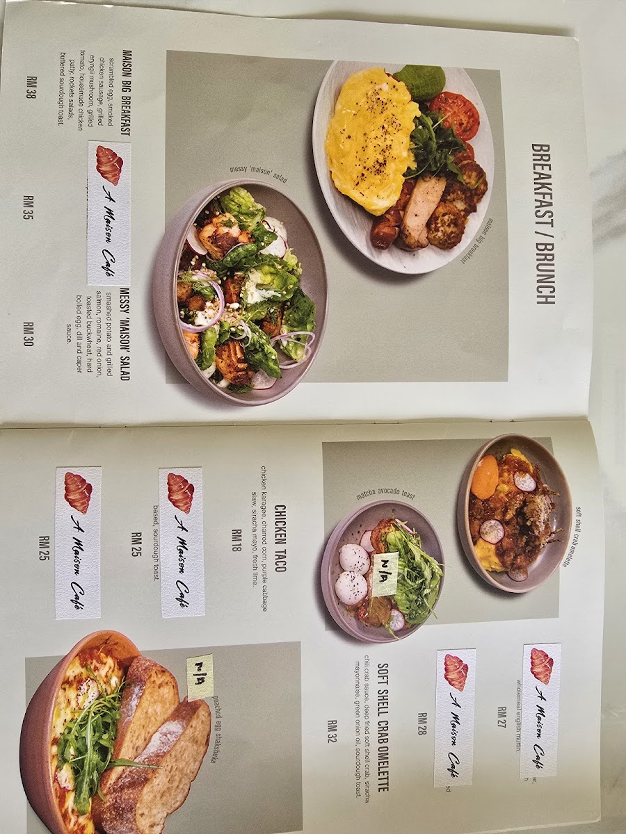This menu is suitable for breakfast, coffee breaks, or light meals throughout the day. It caters both to quick takeaway orders and casual sit-down visits, providing options that work well for a brief stop or a relaxed snack.